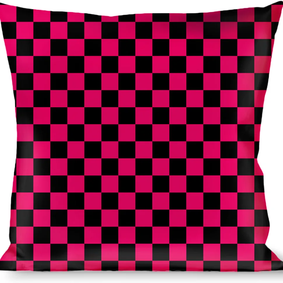 Buckle-Down Throw Pillow – Checker Black/Neon Pink