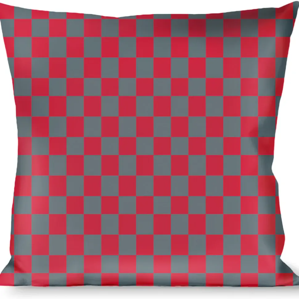 Buckle-Down Throw Pillow – Checker Crimson Red/Gray