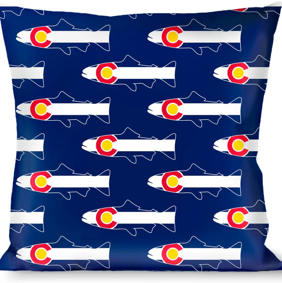Buckle-Down Throw Pillow – Colorado Trout Flag Blue/White/Red/Yellow