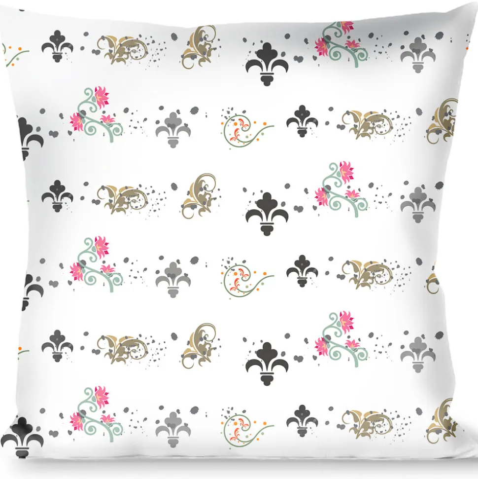 Buckle-Down Throw Pillow – Flower Splatter White/Gray