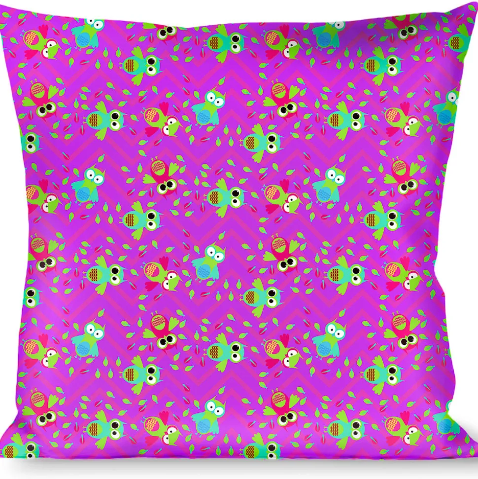 Buckle-Down Throw Pillow – Flying Owls w/Leaves Purple/Multi Color