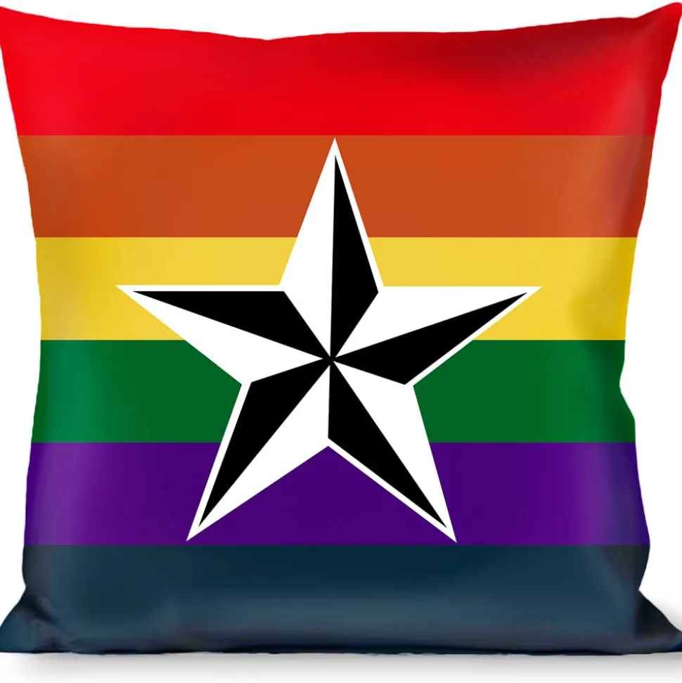 Buckle-Down Throw Pillow – Nautical Star Rainbow/White/Black