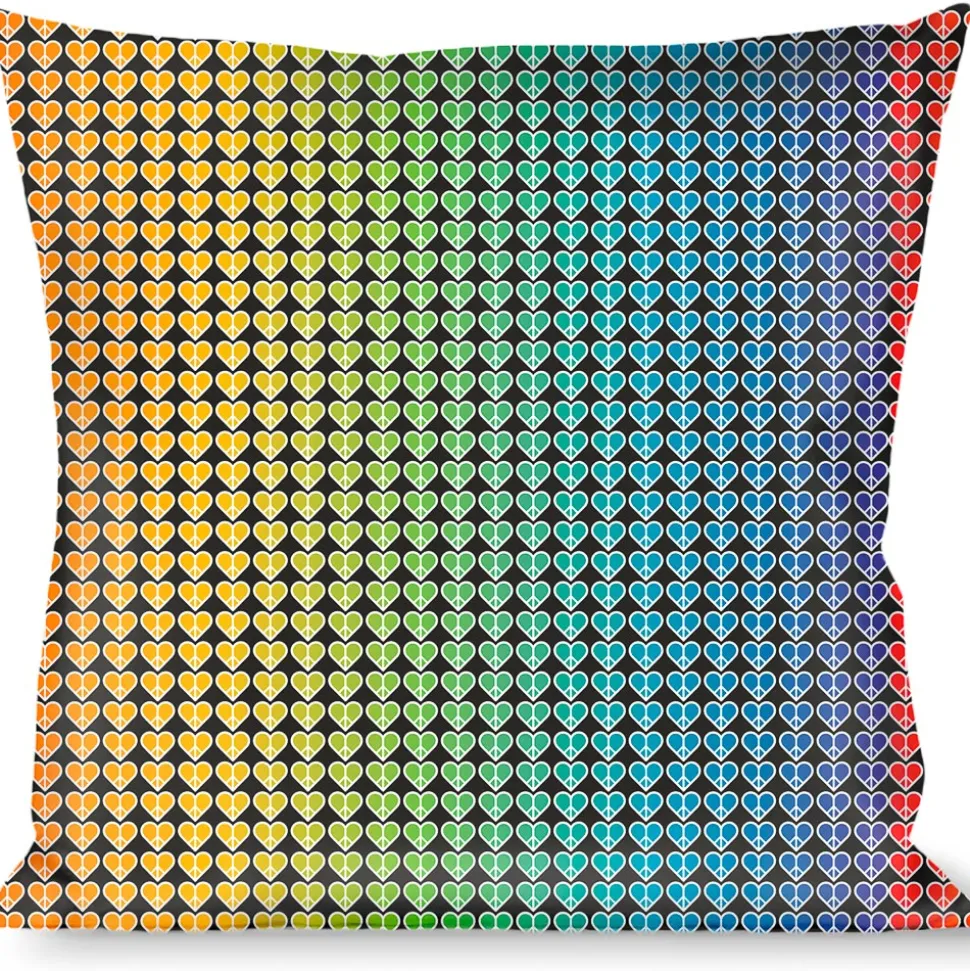 Buckle-Down Throw Pillow - Peace Hearts Repeat Fill Black/Rainbow