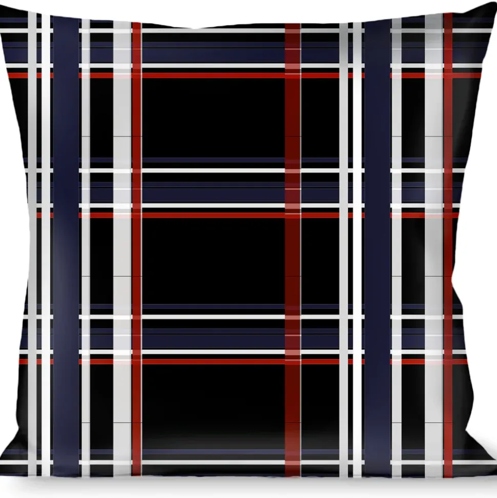 Buckle-Down Throw Pillow – Plaid Black/Red/White/Blue
