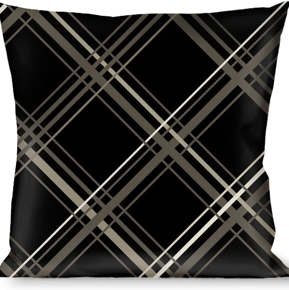 Buckle-Down Throw Pillow – Plaid X Black/Gray