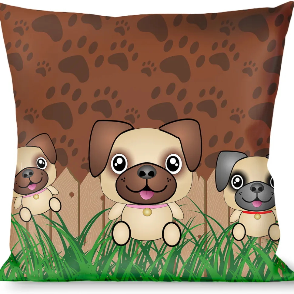 Buckle-Down Throw Pillow – Pug Puppies/Paw Prints Browns/Greens