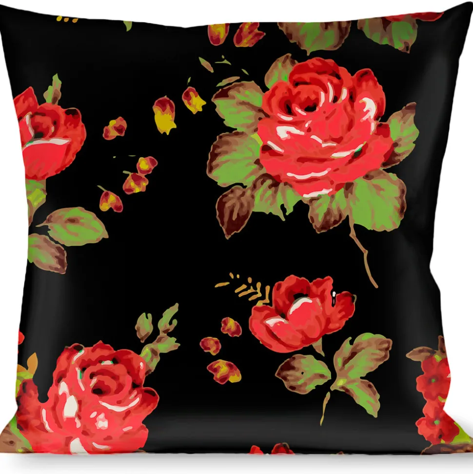 Buckle-Down Throw Pillow – Red Roses Scattered Black