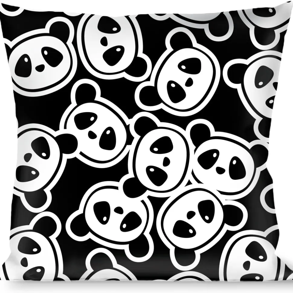 Buckle-Down Throw Pillow - Scattered Panda Bear Cartoon2 Black/White