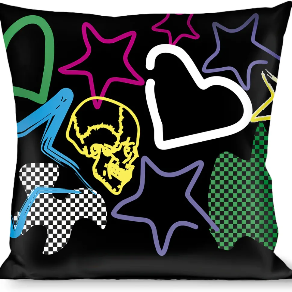 Buckle-Down Throw Pillow – Sketch Skull/Star/Heart/Checker Black/Multi