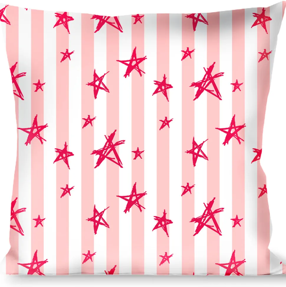 Buckle-Down Throw Pillow - Sketch Stars w/Stripes Pink/White/Fuchsia