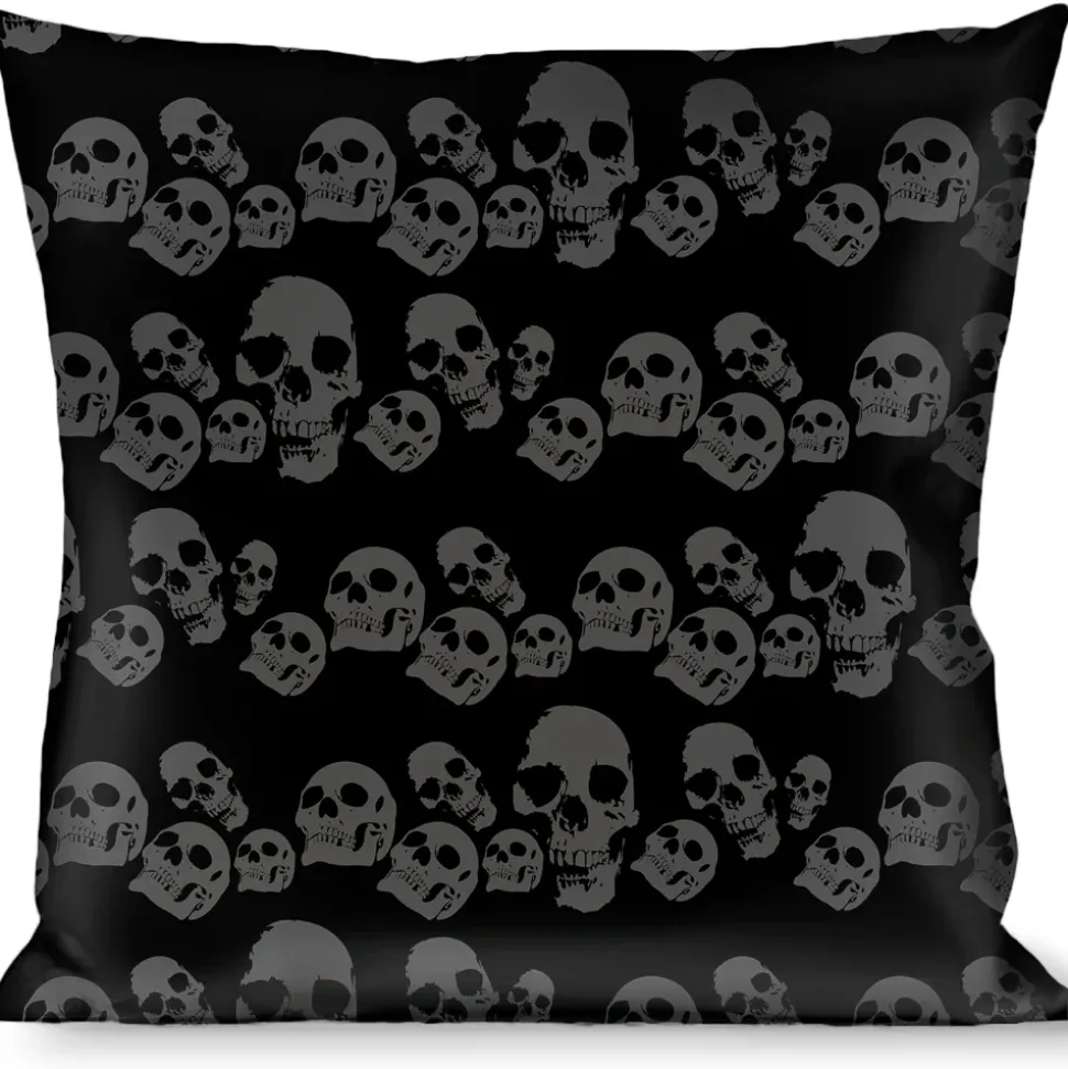 Buckle-Down Throw Pillow – Skulls Stacked Weathered Black/Gray