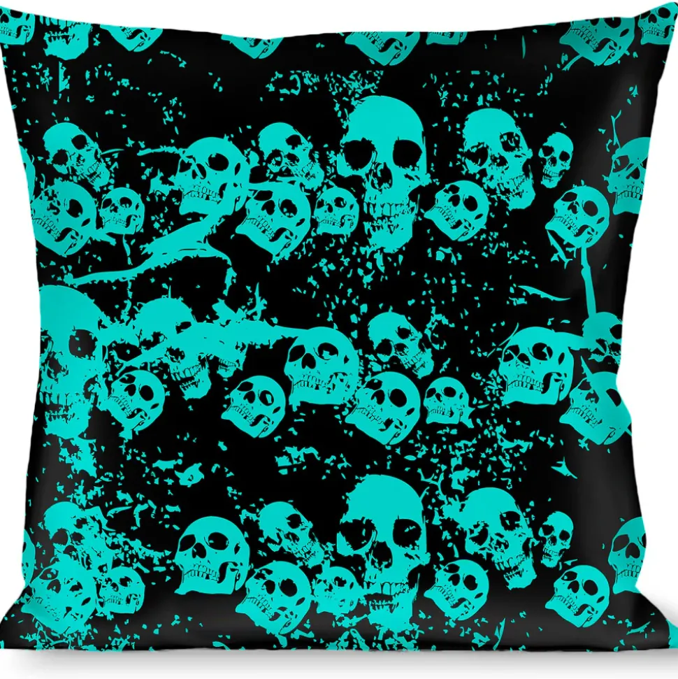 Buckle-Down Throw Pillow – Skulls Stacked Weathered Black/Teal