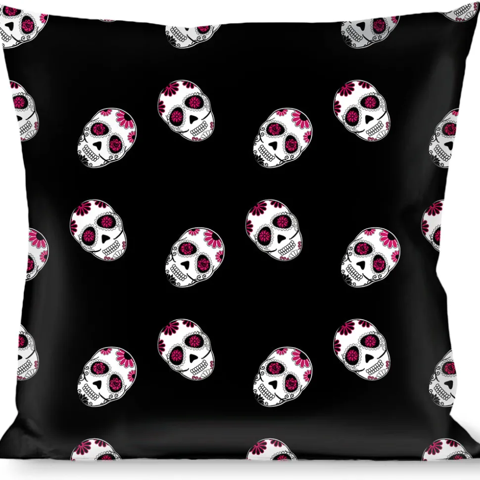 Buckle-Down Throw Pillow - Staggered Sugar Skulls Black/White/Pink