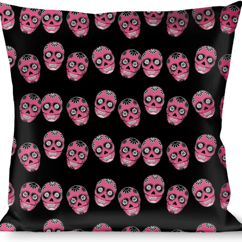 Buckle-Down Throw Pillow - Sugar Skulls Black/White/Fuchsia