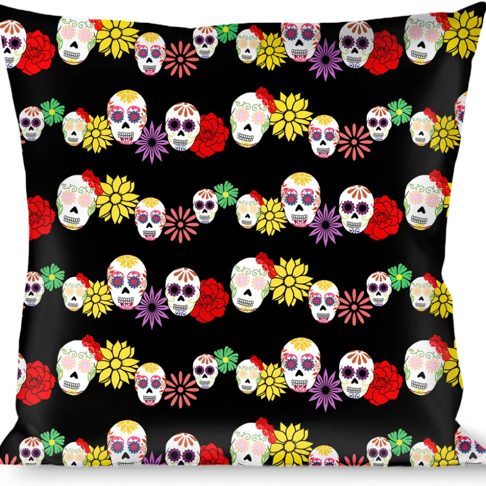 Buckle-Down Throw Pillow – Sugar Skulls & Flowers Black/Multi Color