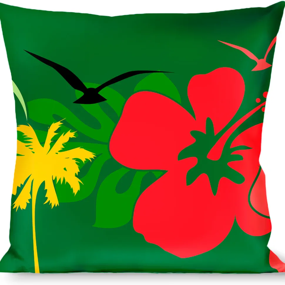 Buckle-Down Throw Pillow - Tropical Flora Greens/Reds/Gold