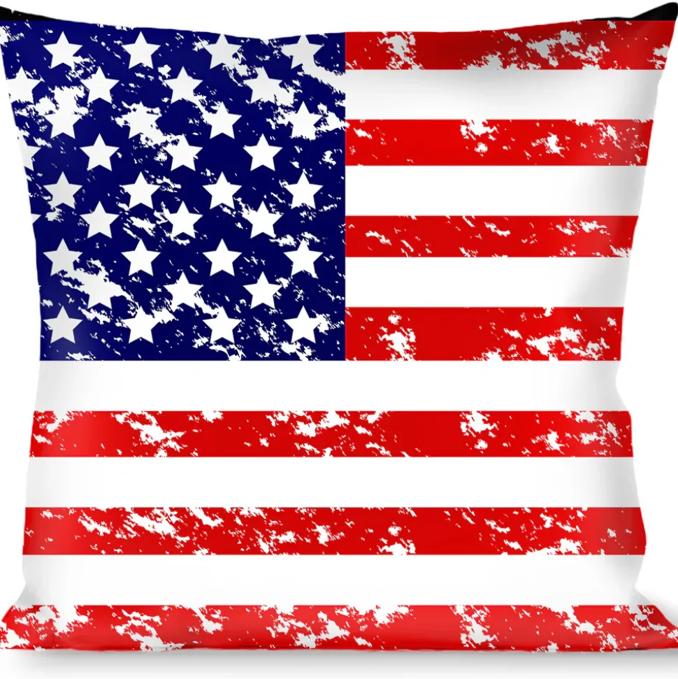 Buckle-Down Throw Pillow - United States Flags Weathered/Black