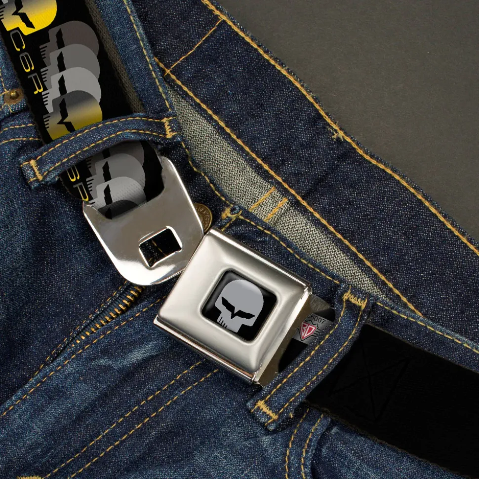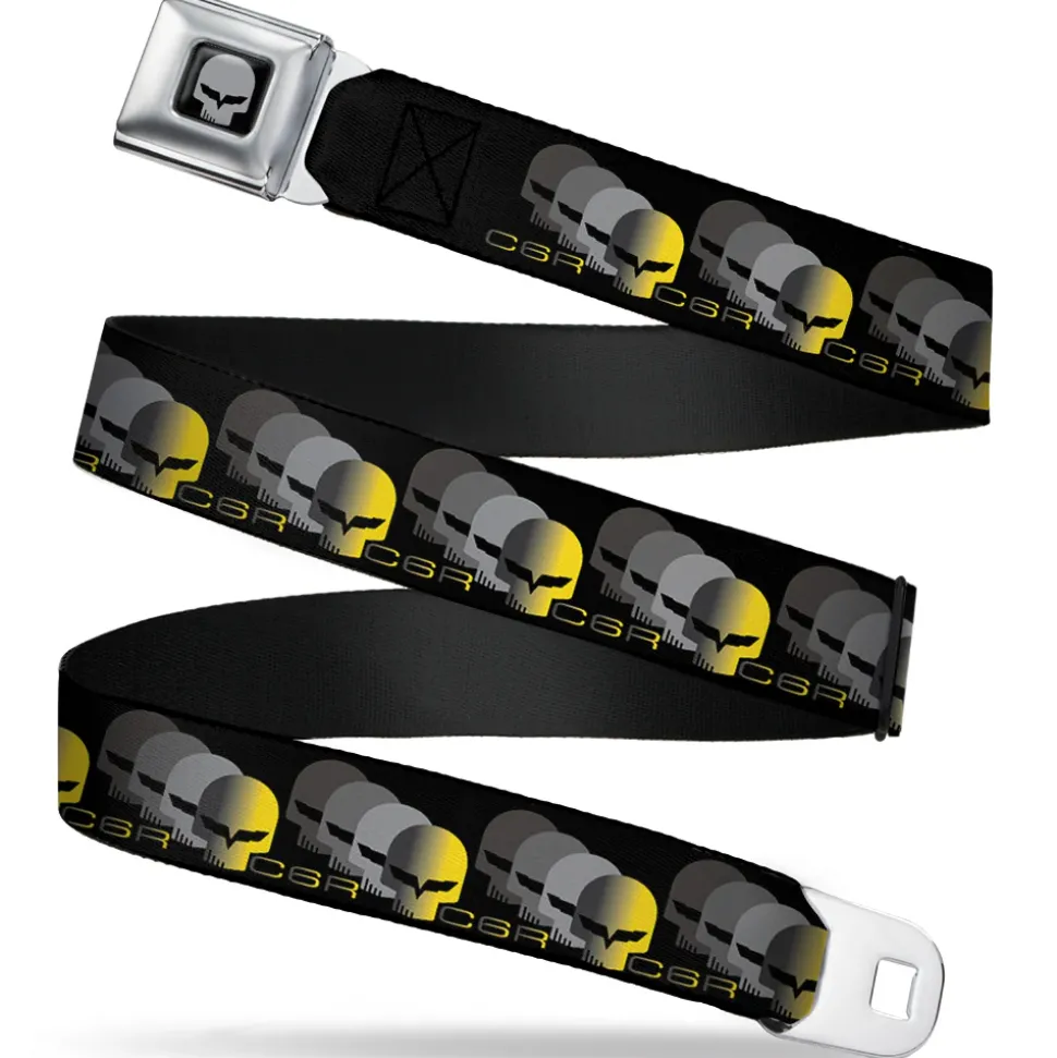 C6R Jake Skull Seatbelt Belt – C6 Racing w/Skull Repeat Black/Yellow/Silver Webbing