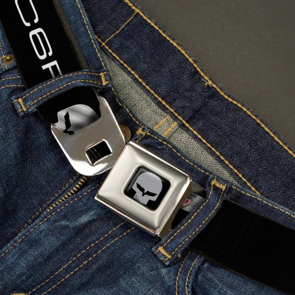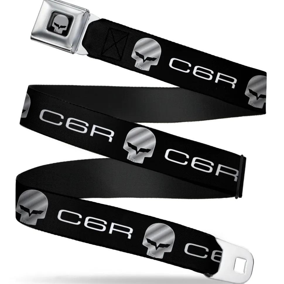 C6R Jake Skull Seatbelt Belt – C6R Racing Skull Logo Black/Silver Webbing