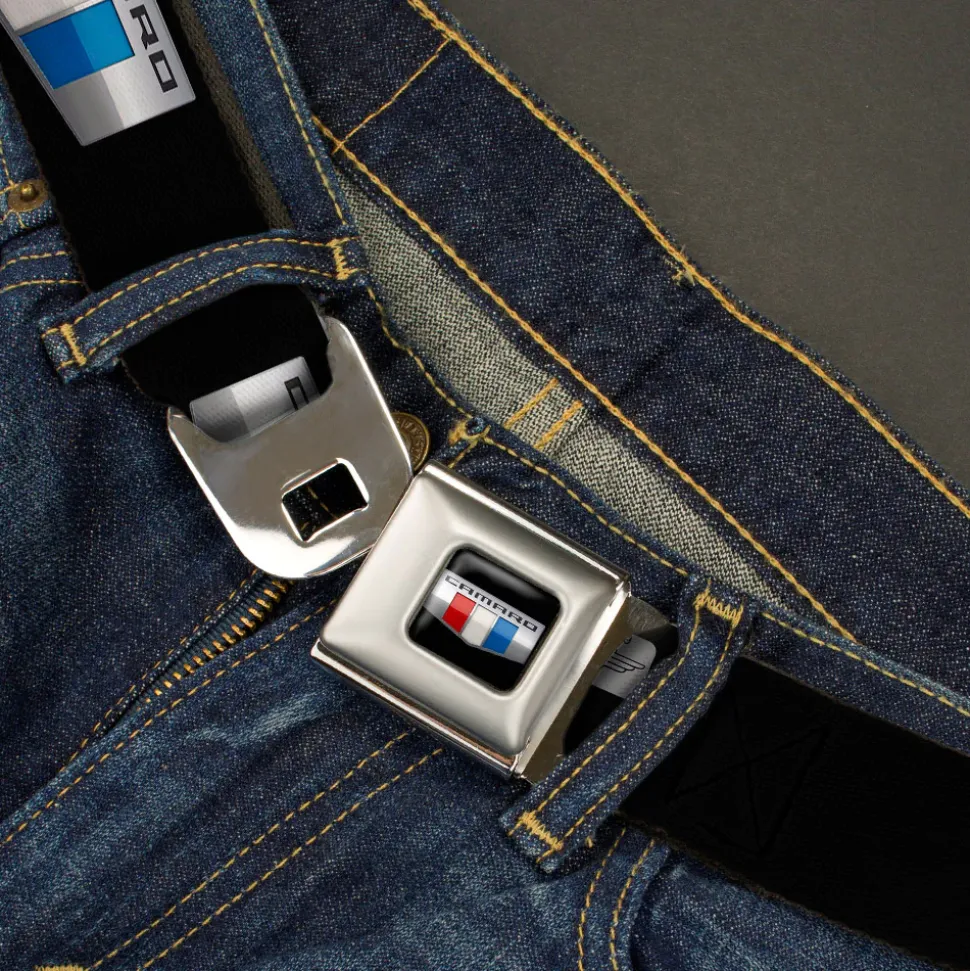 CAMARO Six Badge Full Color Black Silver Red White Blue Seatbelt Belt – CAMARO Six Badge Black/Silver/Red/White/Blue Webbing