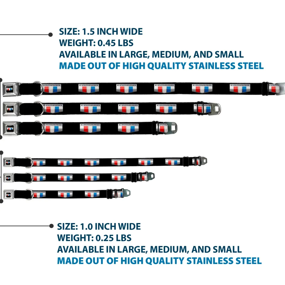 Your dog will be the talk of the town when people notice they’re wearing this awesome SeatBelt Dog Collar! Made from high-density polyester and durable steel components, this collar is built to last. It features beautiful vibrant artwork. The buckle is a miniature authentic SeatBelt Buckle, so you press the center button to release the clasp. This product is Made in USA by Buckle-Down Inc. and officially licensed by GM General Motors.