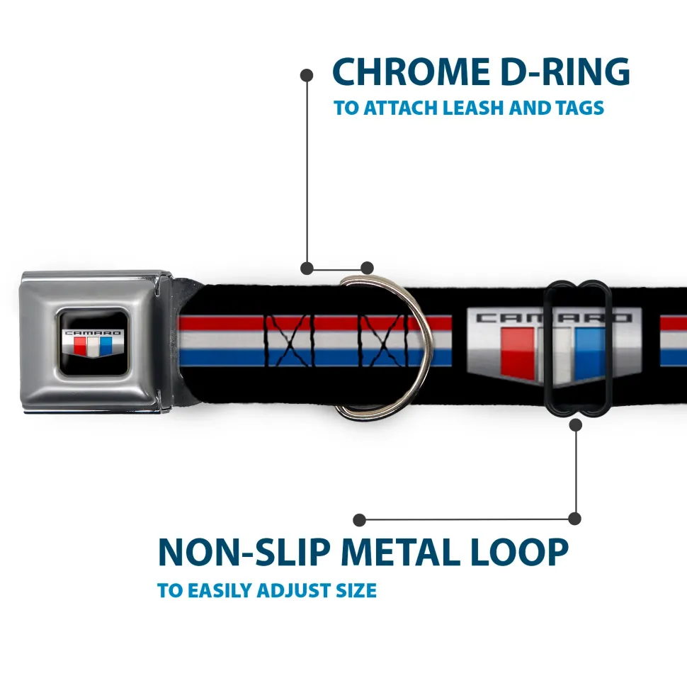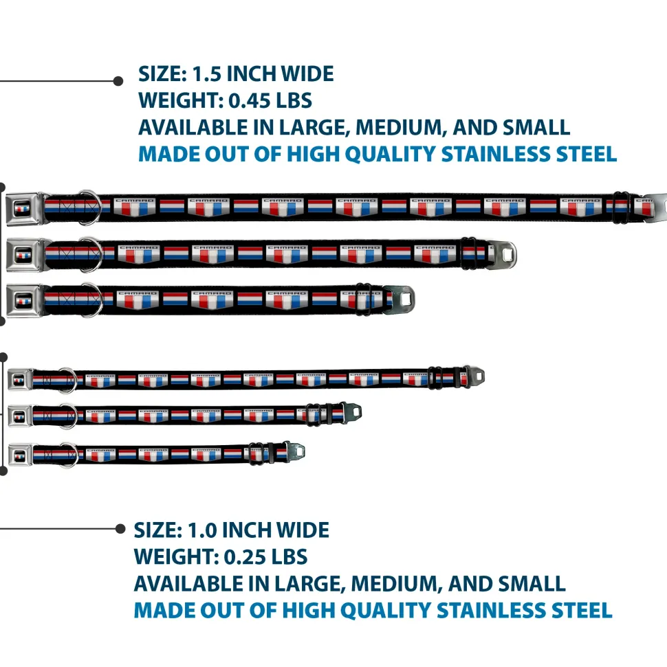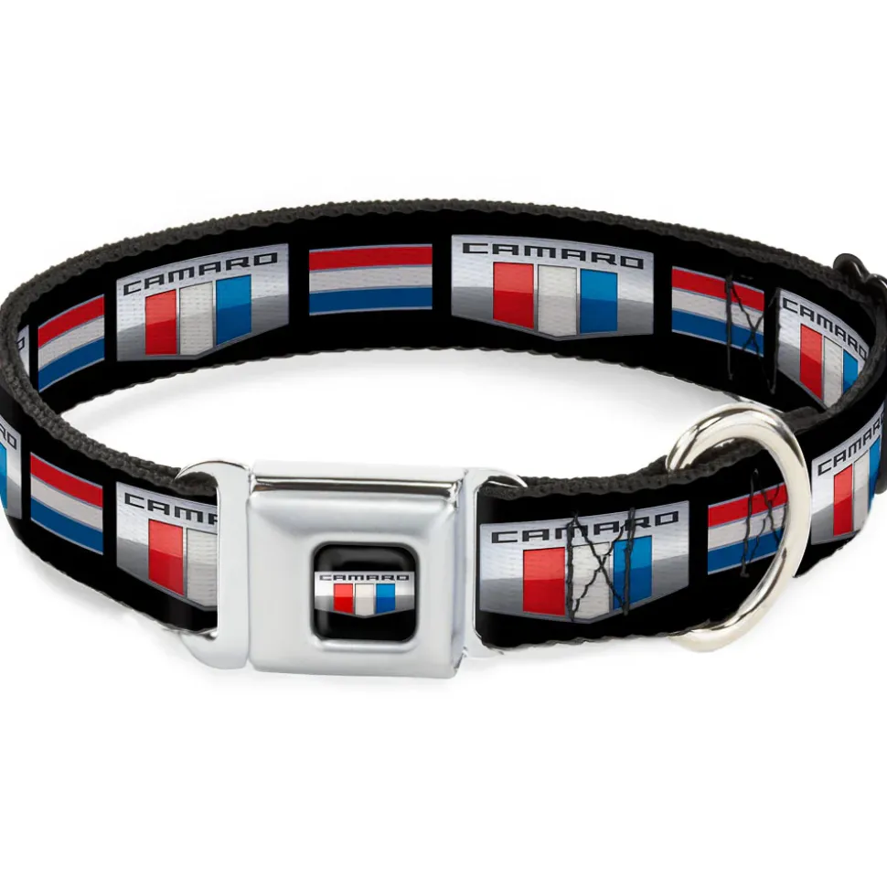 Your dog will be the talk of the town when people notice they’re wearing this awesome SeatBelt Dog Collar! Made from high-density polyester and durable steel components, this collar is built to last. It features beautiful vibrant artwork. The buckle is a miniature authentic SeatBelt Buckle, so you press the center button to release the clasp. This product is Made in USA by Buckle-Down Inc. and officially licensed by GM General Motors.