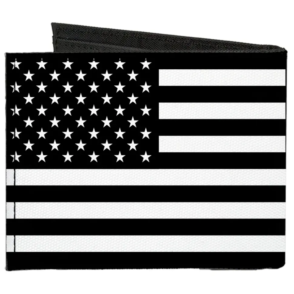 Canvas Bi-Fold Wallet – American Flag Black White