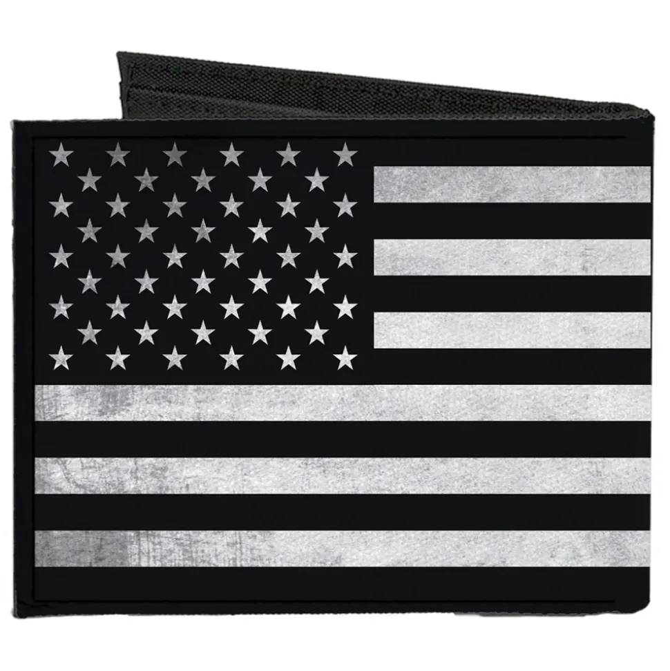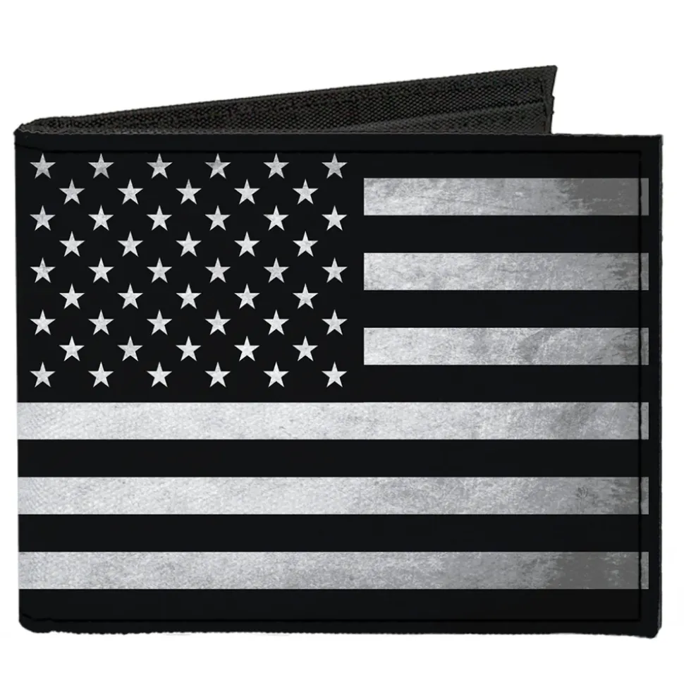 Canvas Bi-Fold Wallet – American Flag Weathered Black White