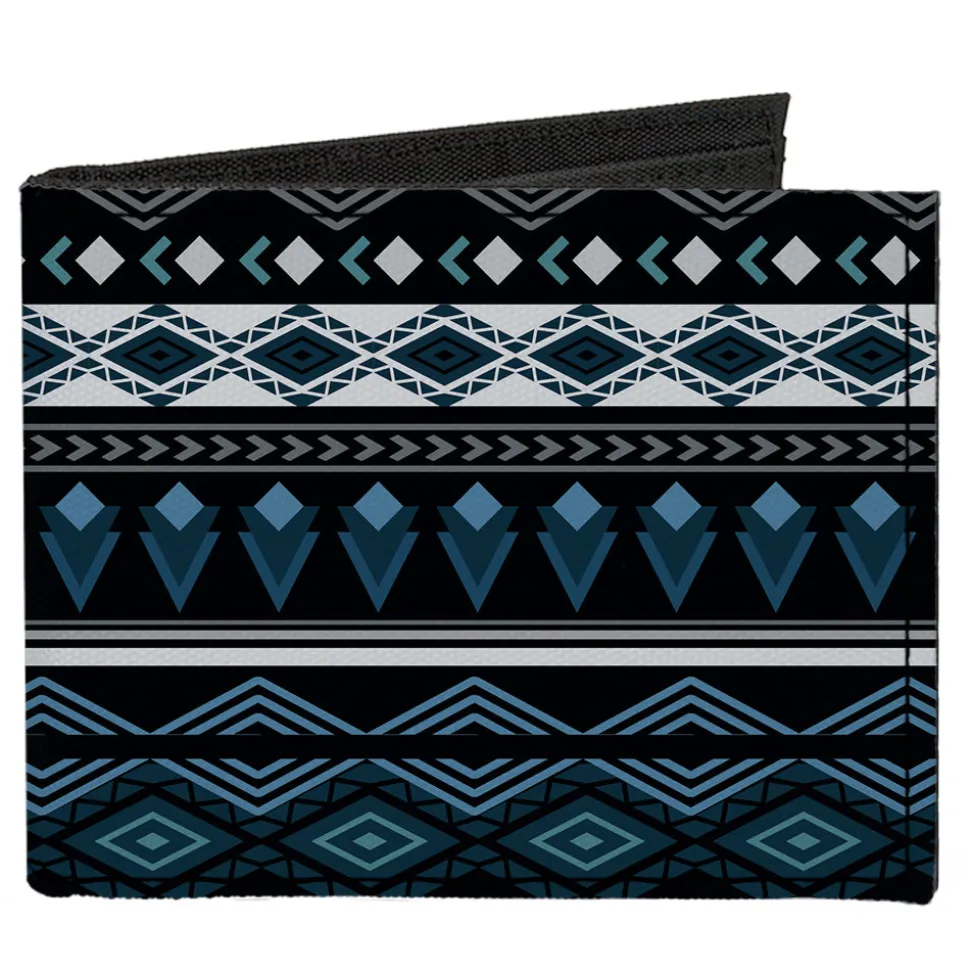 Canvas Bi-Fold Wallet – Aztec8 Blues White Gray