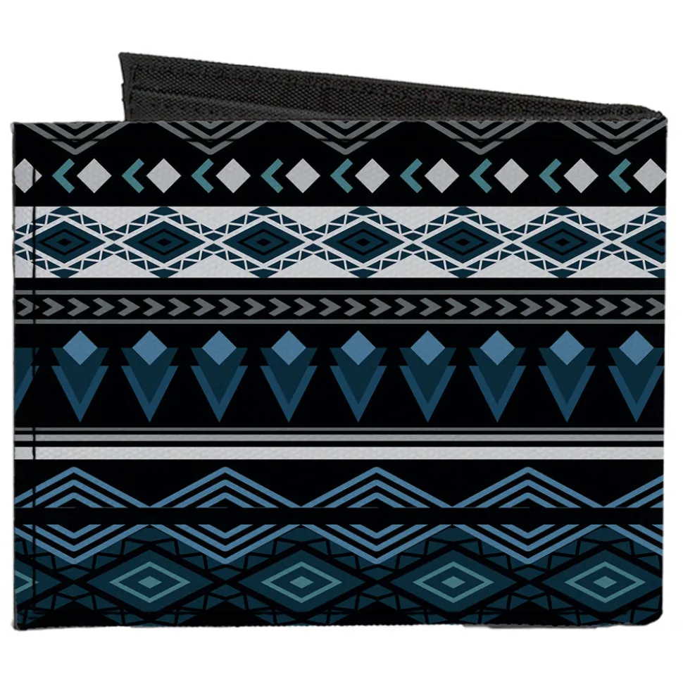 Canvas Bi-Fold Wallet - Aztec8 Blues White Gray