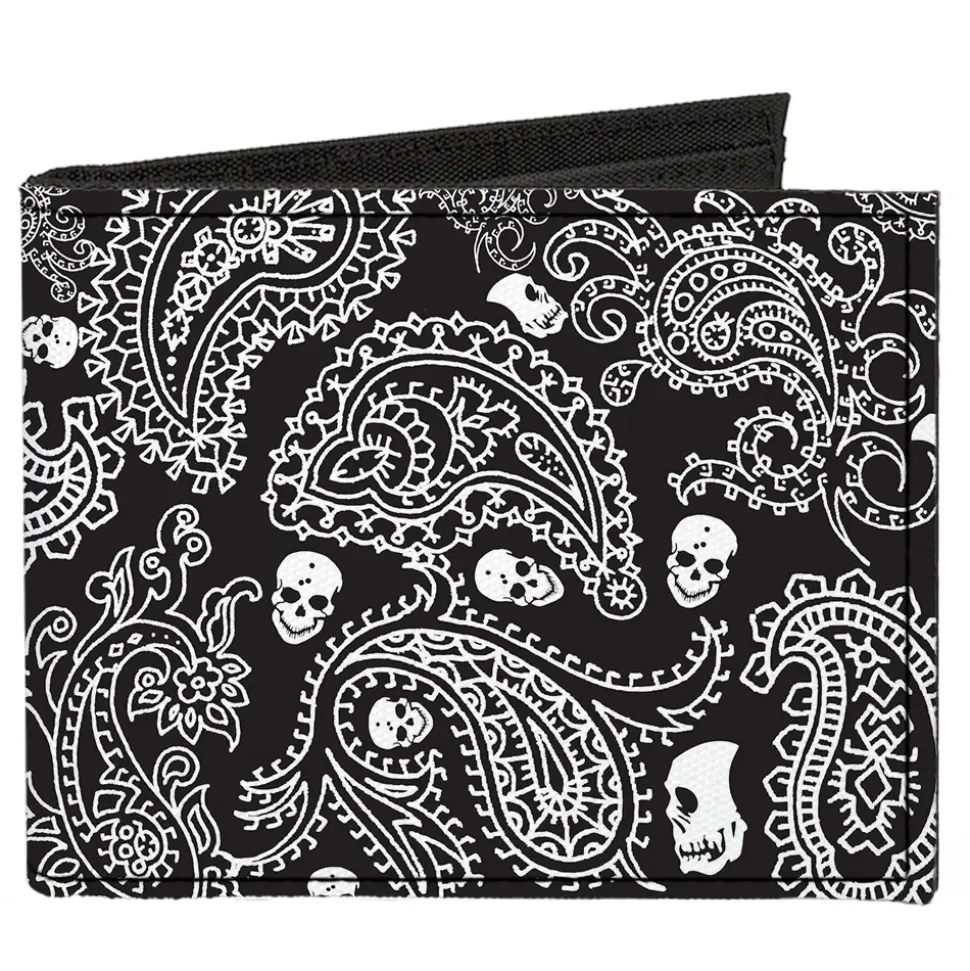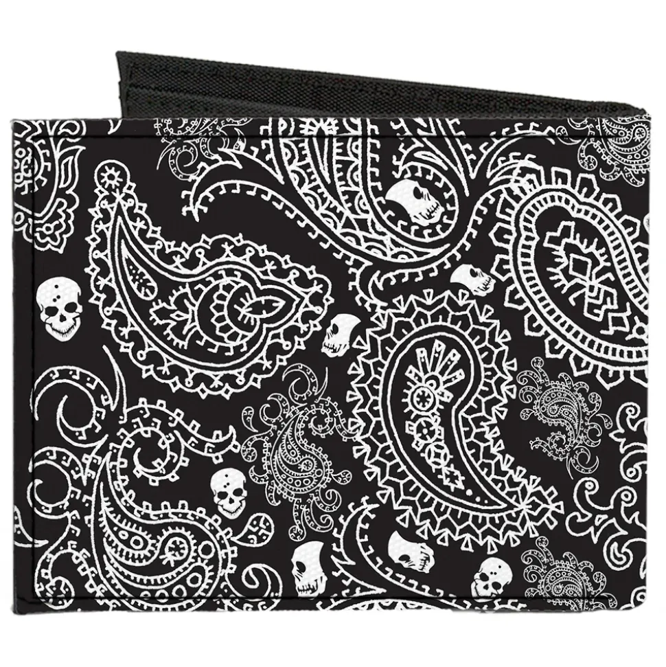 Canvas Bi-Fold Wallet – Bandana Skulls Black White