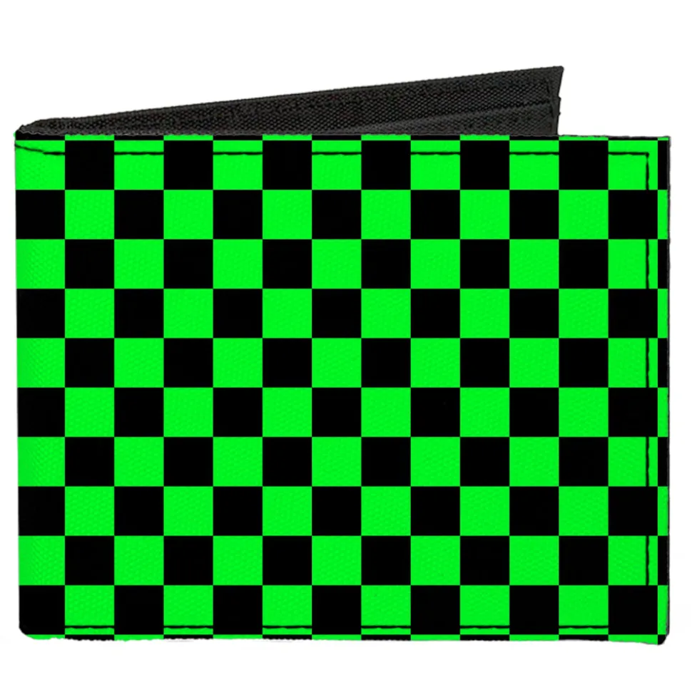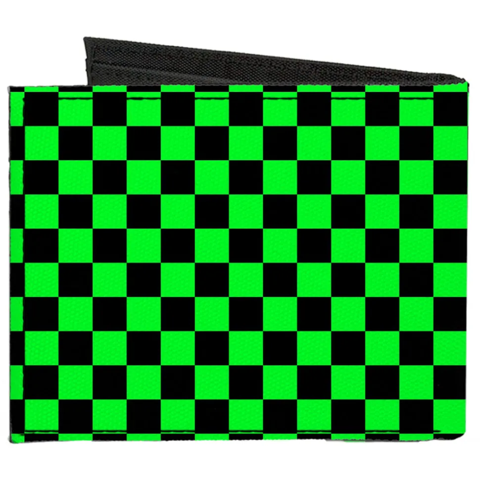 Canvas Bi-Fold Wallet – Checker Black Neon Green