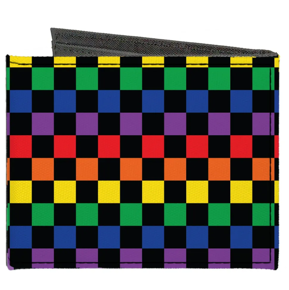Canvas Bi-Fold Wallet – Checker Black Rainbow Multi Color