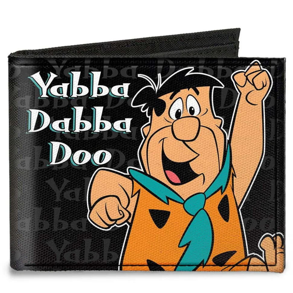 This men’s bi-fold wallet is made from high-density woven canvas. It measures 4.0″x3.5″x0.5″, and features the standard billfold, 5 card slots, and windowed ID holder. The logos are applied using advanced printing technologies, so the wallet will still look good after years of hard use. This product is Made in the USA by Buckle-Down, Inc. and Officially Licensed by The Flintstones.