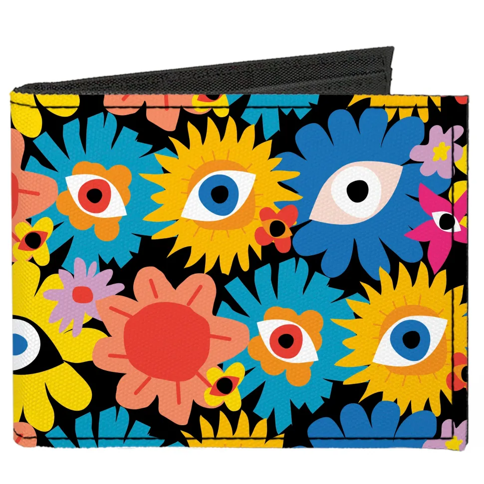 Canvas Bi-Fold Wallet – Funky Eye Flowers Black/Multi Color