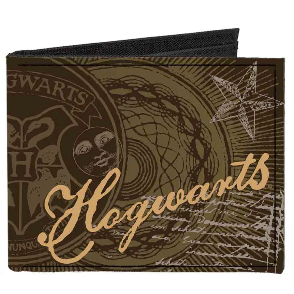 Canvas Bi-Fold Wallet – HOGWARTS Symbols Collage House Badges Browns Multi Color