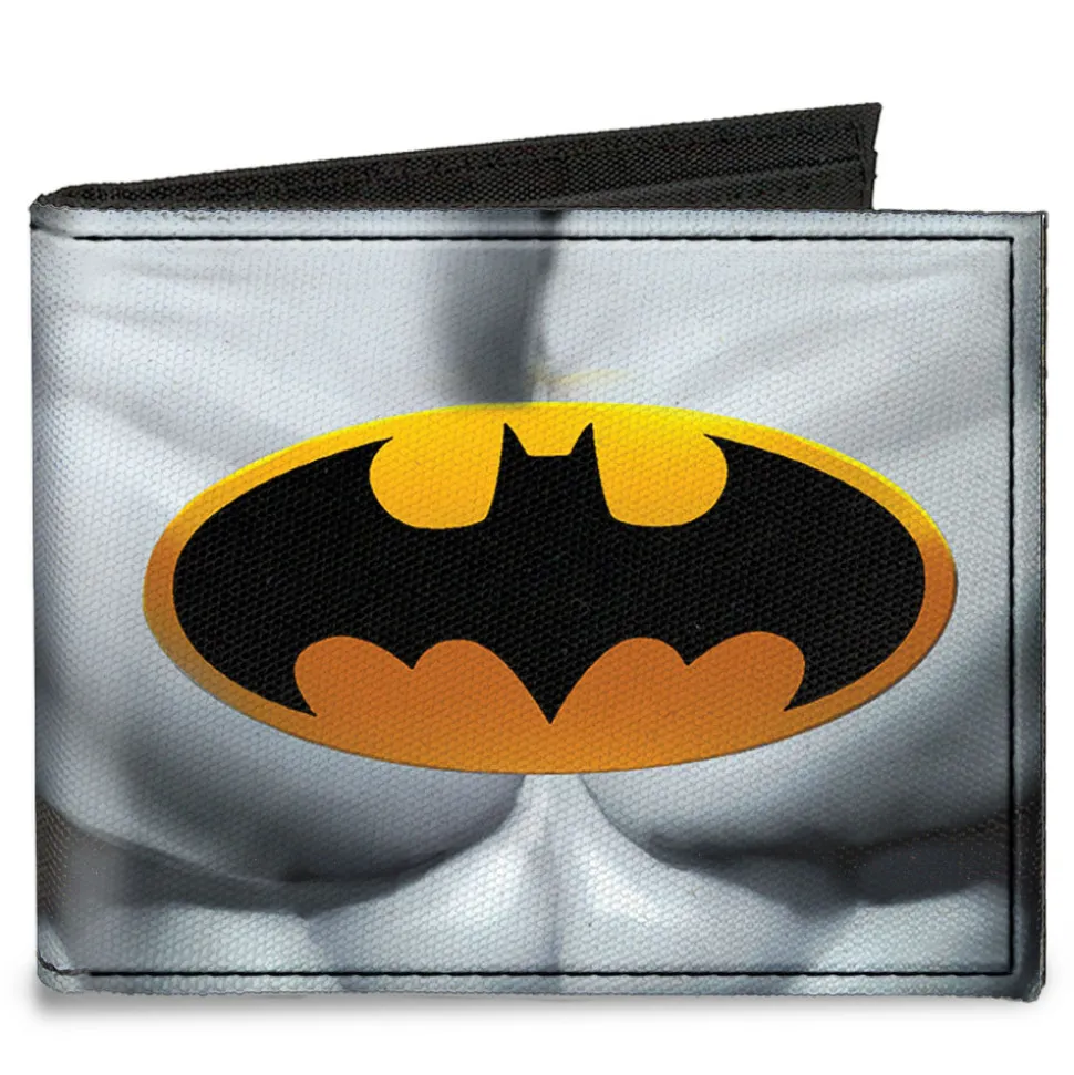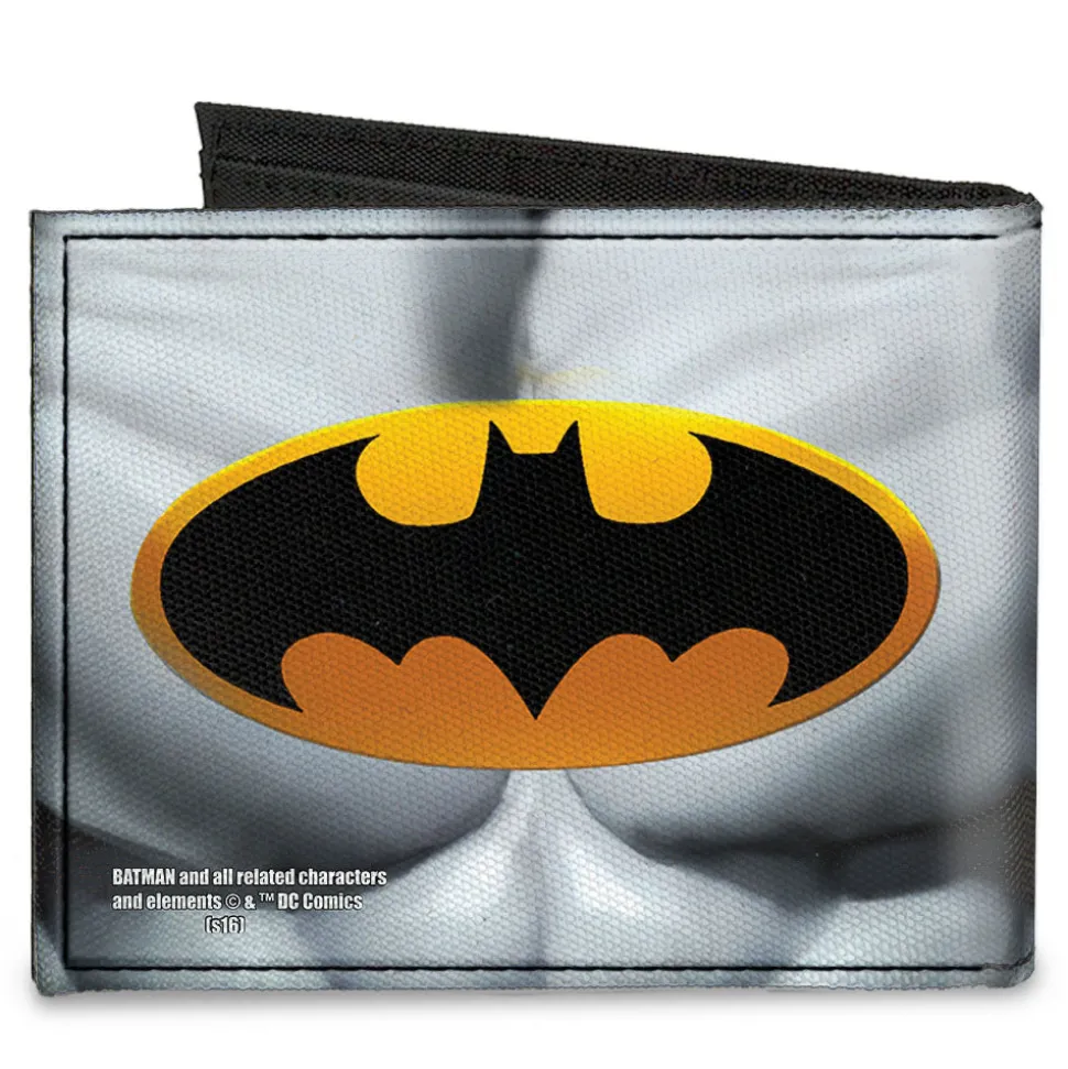 Canvas Bi-Fold Wallet – Justice Leaue Supreme Team Batman Chest Logo Grays Yellow Black