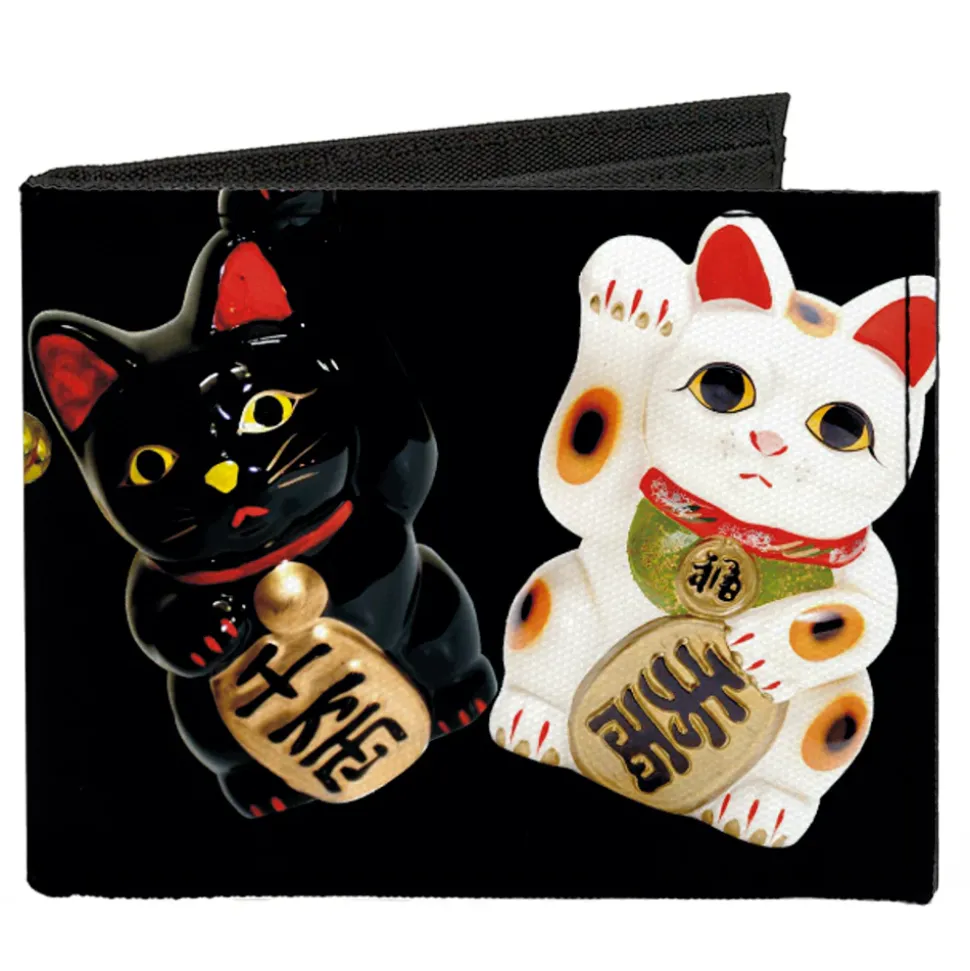 Canvas Bi-Fold Wallet – Maneki Neko Lucky Cats Gold Black White