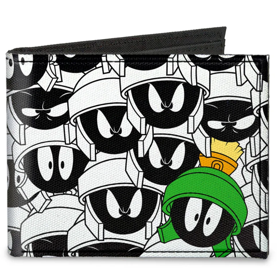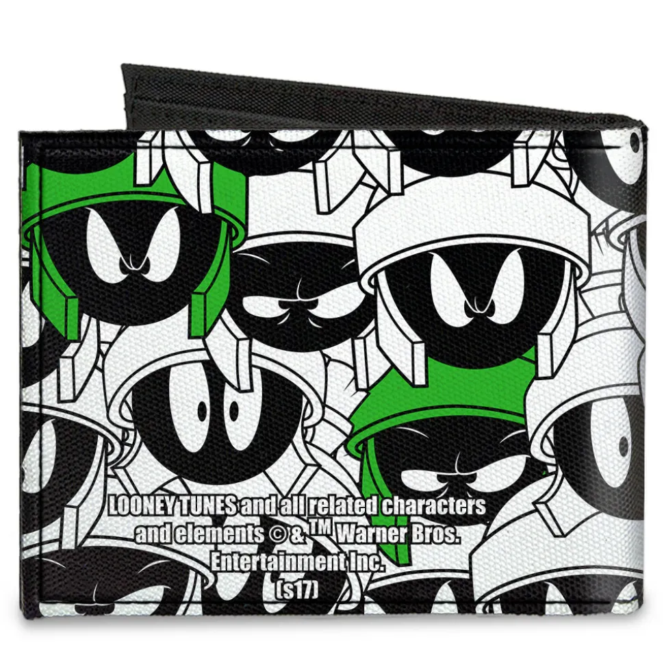 Canvas Bi-Fold Wallet – Marvin the Martian Expressions Stacked White Black Green Yellows
