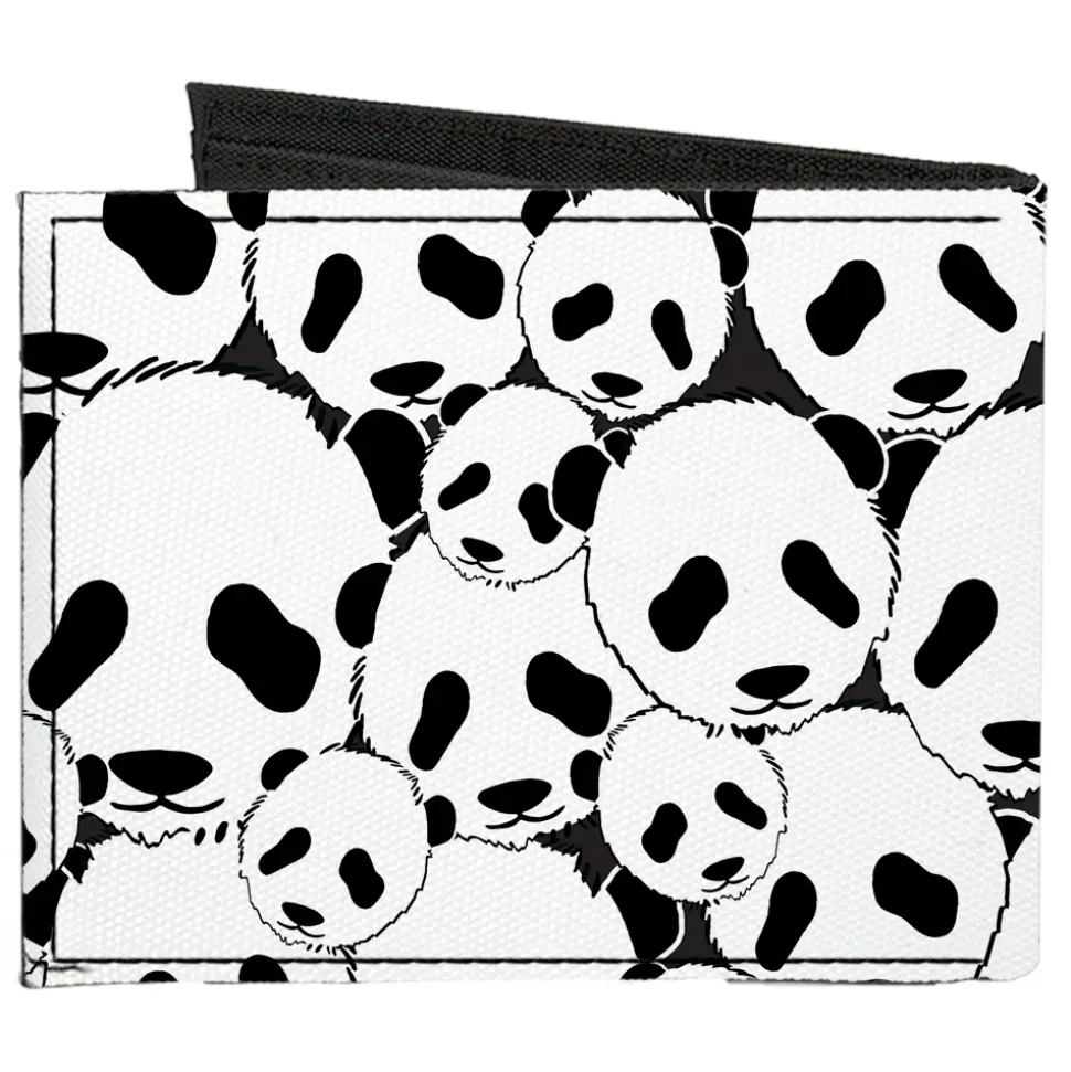 Canvas Bi-Fold Wallet – Panda Bear Stacked