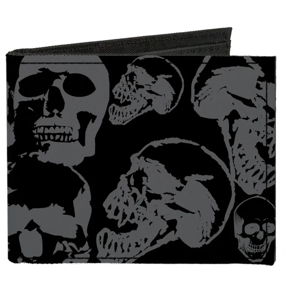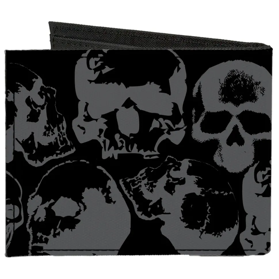 Canvas Bi-Fold Wallet – Skull Pile Black Gray