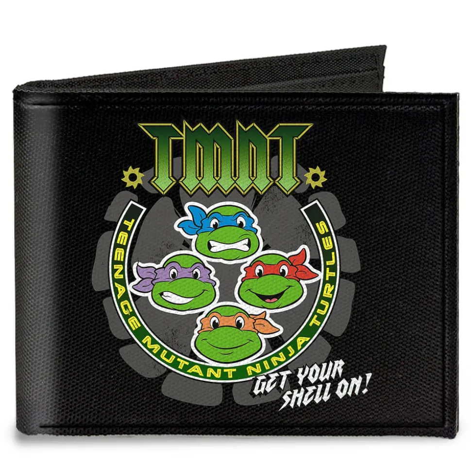 Canvas Bi-Fold Wallet – TMNT-GET YOUR SHELL ON + TMNT WORLD TOUR 84 Black Gray Green