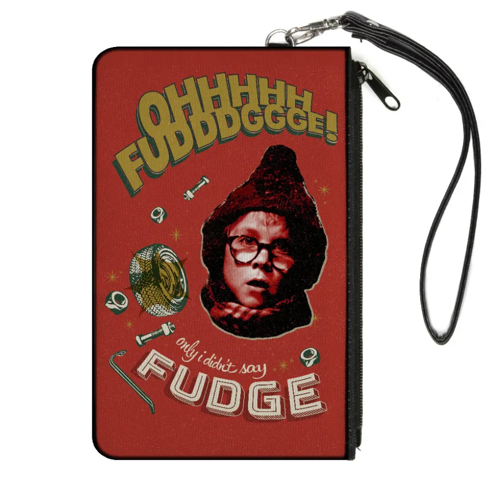 This is your classic “clutch” wallet, great for when you don’t want to carry around a bulky purse. It’s made from high-density woven nylon, and measures 8.0″x5.0″, with 4 card slots, a billfold, and a pouch. It zips smoothly shut, and has a detachable wrist strap for easy carrying. This product is Made in USA by Buckle-Down, Inc. and Officially Licensed by Warner Bros.