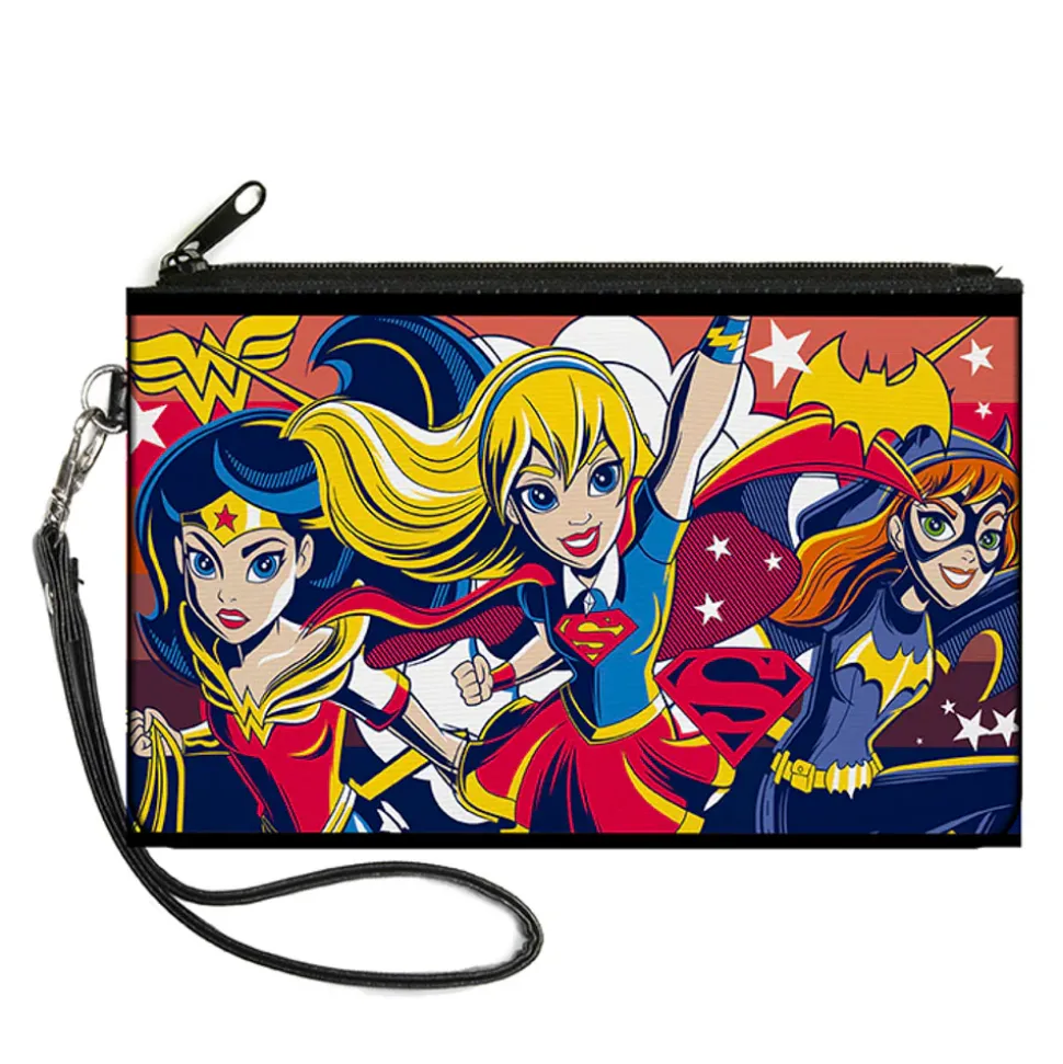Canvas Zipper Wallet - LARGE - DC Super Hero Girls Trio Group Pose Logo Reds Blues