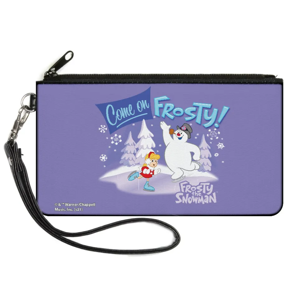 Canvas Zipper Wallet – LARGE – FROSTY THE SNOWMAN Skating with Karen COME ON FROSTY! Purple Blues