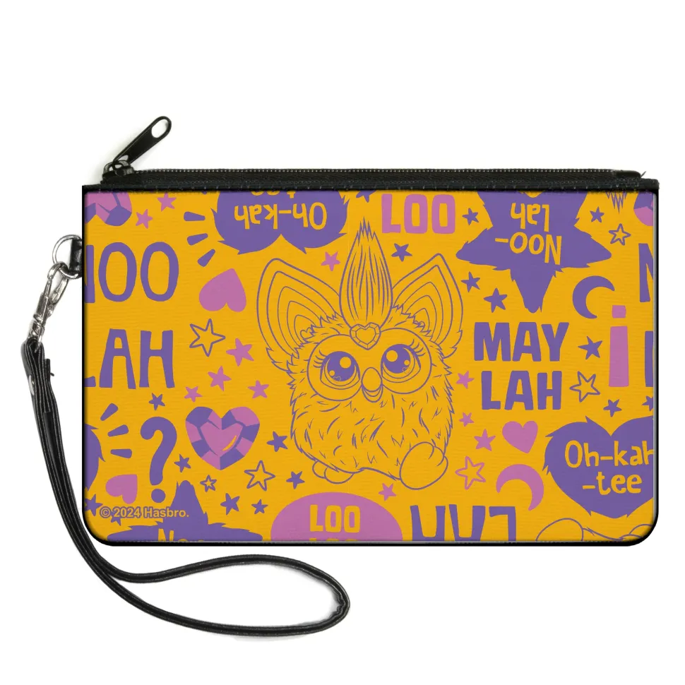 Canvas Zipper Wallet - LARGE - Furby Furbish Phrases and Icons Orange/Pink/Purple