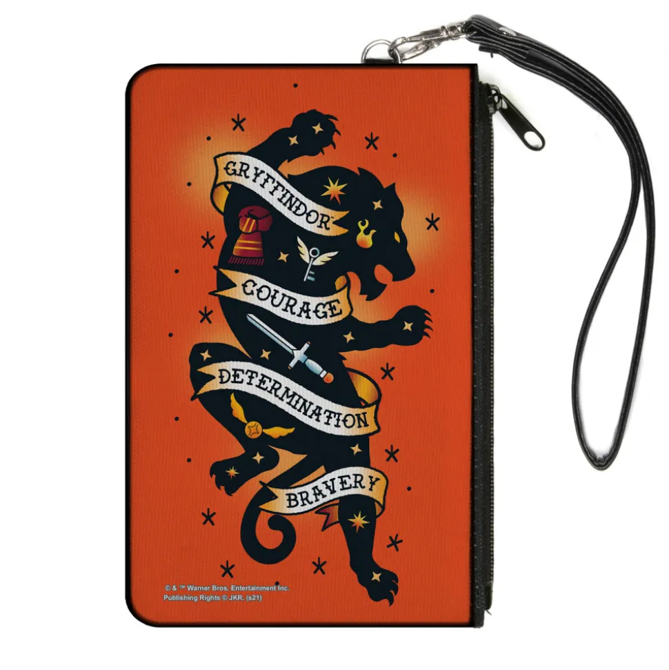 Canvas Zipper Wallet – LARGE – Harry Potter GRYFFINDOR Lion COURAGE DETERMINATION BRAVERY Tattoo Orange