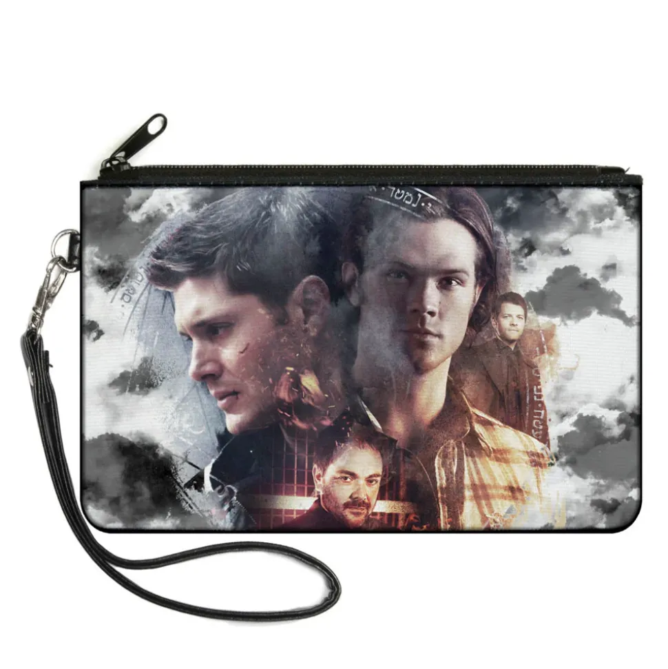 Canvas Zipper Wallet - LARGE - SUPERNATURAL 4-Character Poses Clouds Grays Full Color
