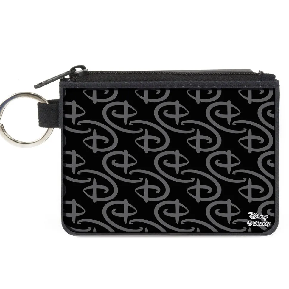 Canvas Zipper Wallet - MINI X-SMALL - Disney Signature D Logo Monogram Black Gray