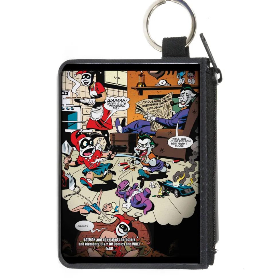 Canvas Zipper Wallet - MINI X-SMALL - Mad Love Harley Quinn Family Life Dreaming Scene w Joker & Kids